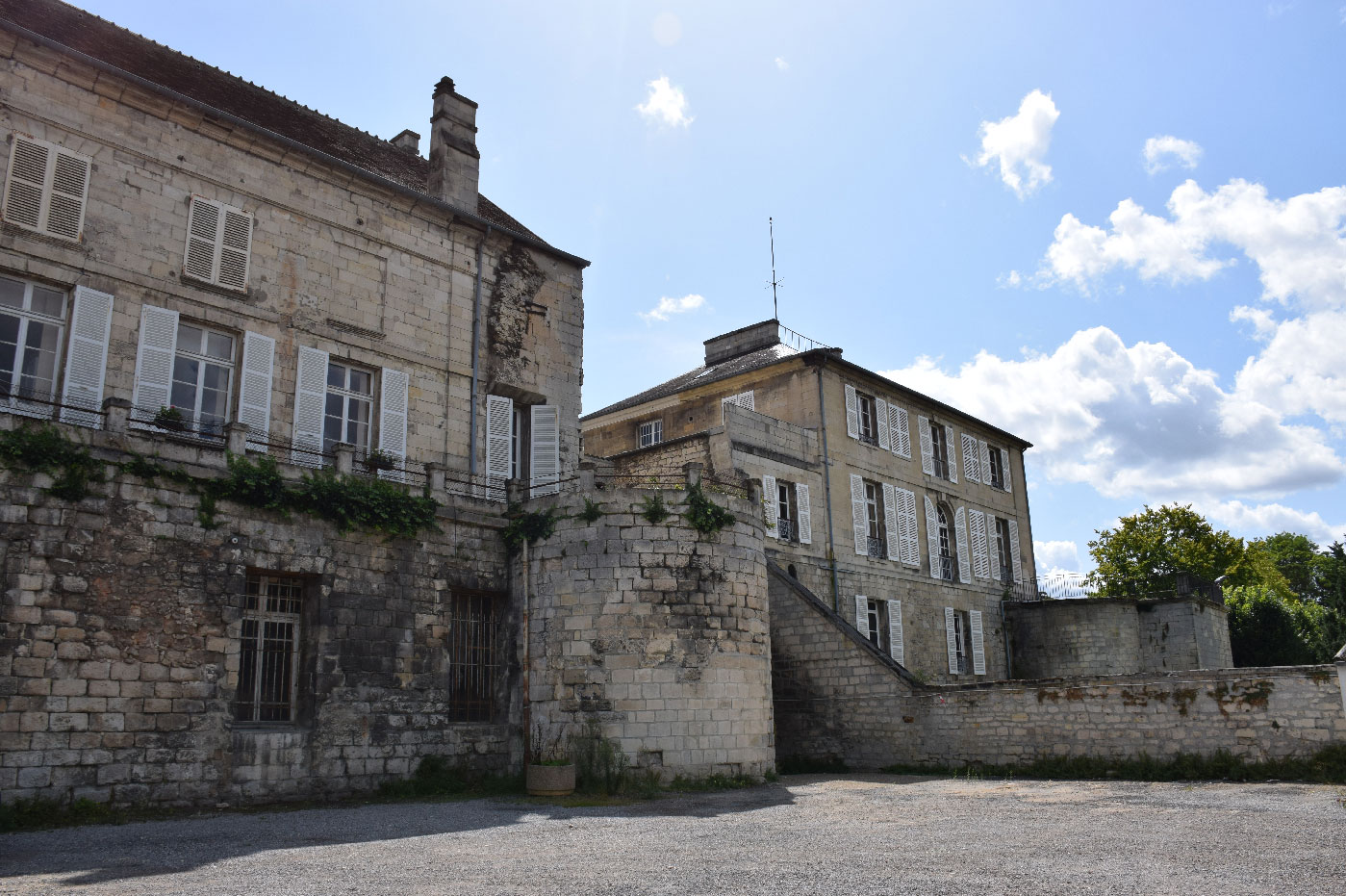 Le château du 13ème siècle était à l’origine entouré d’un fossé rempli d’eau qui a aujourd’hui disparu, probablement comblé dès le 14ème siècle. Il devait être adossé directement contre le mur grâce à un mortier adapté. Durant les fouilles archéologiques, de multiples tessons de céramique du 14ème siècle d’une très bonne qualité ont été retrouvés : au-delà de son seul aspect défensif, la fosse servait aussi à se débarrasser des objets usagés.